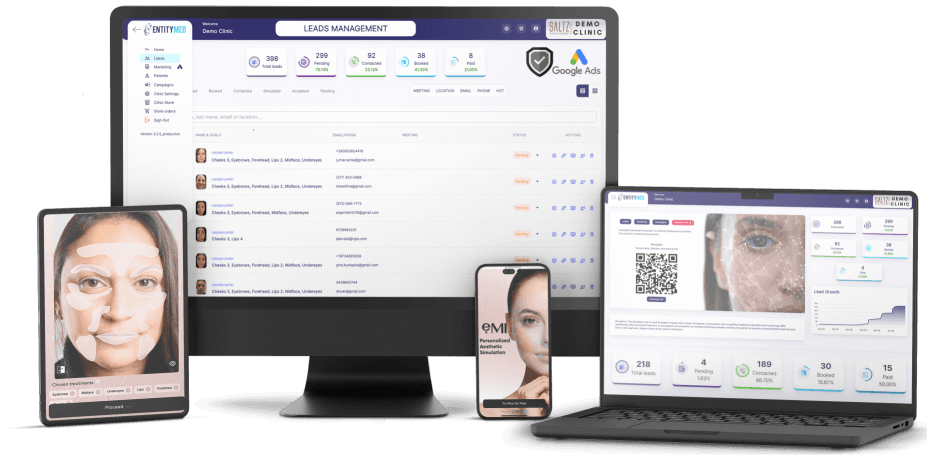 Allegro MedSpa set up their EntityMed platform and saw immediate results. Their custom-branded EntityMed AI Facial Simulator tool captured 120 qualified leads in the first weekend! The EntityMed lead management portal allowed the practice staff to easily manage and nurture these leads and convert them into booked appointments. The EntityMed Google Ads campaign integration simplified their online advertising setup, driving more traffic to their free online simulator tool. EntityMed generated over $25,000 in revenue for Allegro MedSpa within a 2-month timeframe.