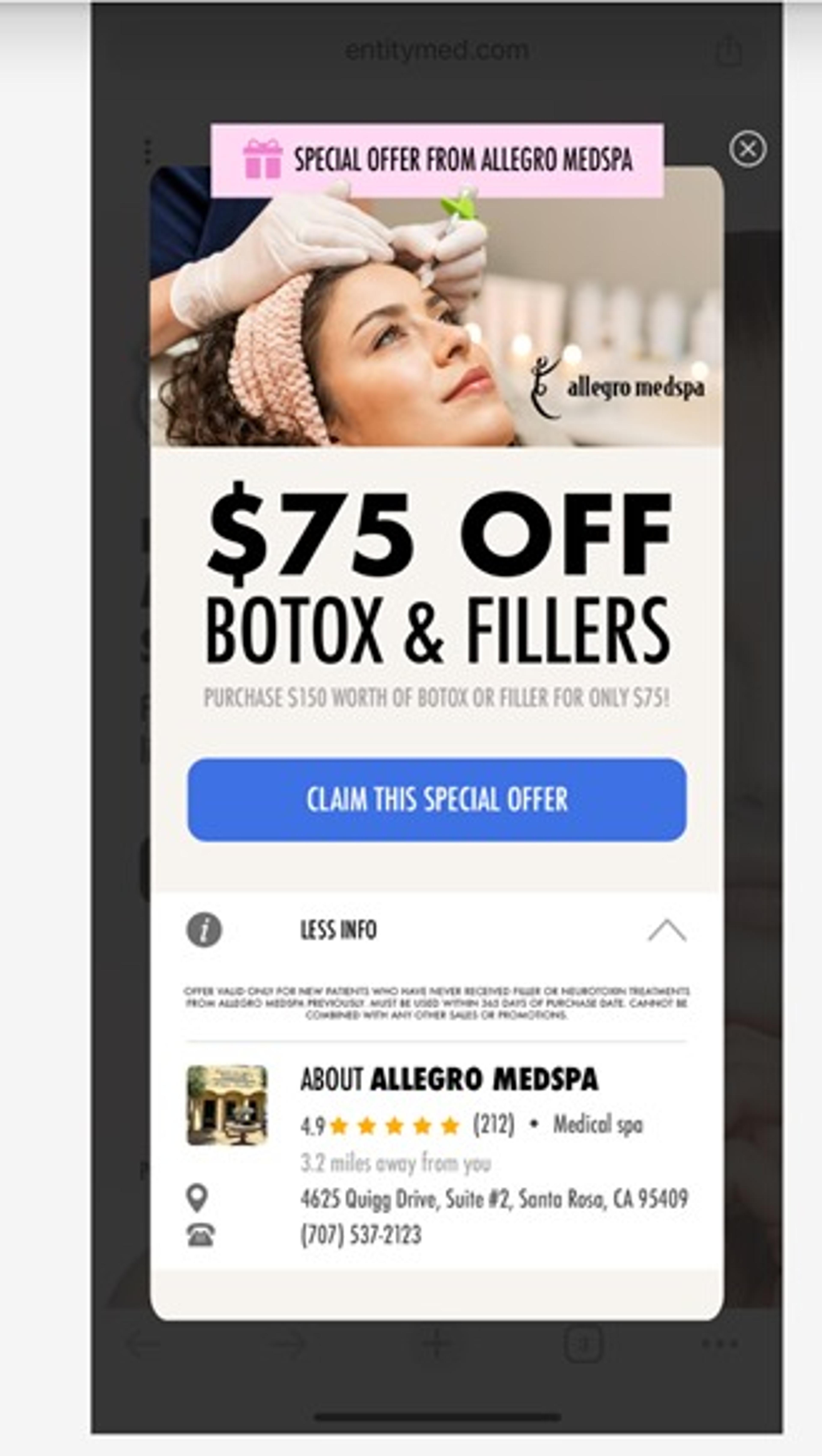 - Upselling opportunities: Clients who redeem a promotion are often open to spending more during their visit. Research shows that 68% of customers using coupons end up purchasing more than intended. This opens opportunities for clinics to upsell other treatments or skincare products.